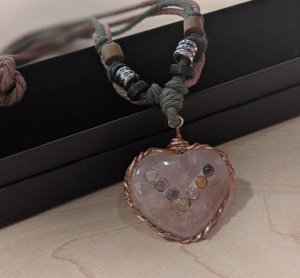 Rose Quartz Heart Chakra Necklace - Adjustable Hemp Cord